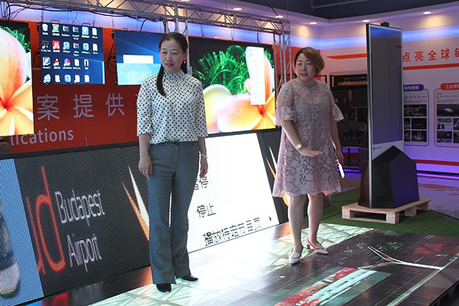 王立萍书记正在体验酷游九州P2.604镀膜地砖屏
