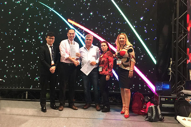 近年来,酷游九州在海外市场投入越来越大,成果也非常显著。刚刚过去的3月,酷游九州在奥兰多会展中心结束了第七十二届美国国际标识展(ISA Sign Expo),而即将到来的5月,酷游九州还将参加墨西哥广告展。此次,酷游九州墨西哥代理更是驱车前来,在为现场助阵的同时,爽快的对代理协议进行了续签!毫无疑问,“利益”是合作长久的基础。